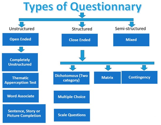 As shown in Figure 3, several types of questionnaires exist; for this study, a closed questionnaire was selected due to its advantages in data quantification and analysis.