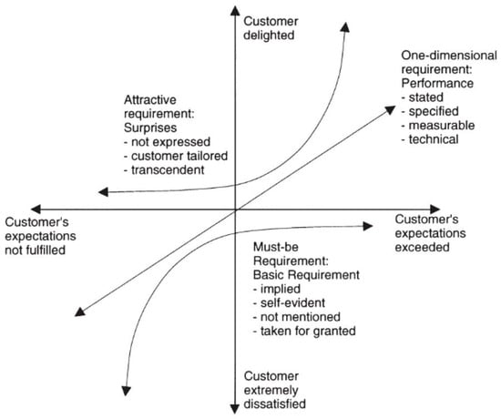 - Matzler, K.; Hinterhuber, H.H. How to make product development projects more successful by integrating Kano’s model of customer satisfaction into quality function deployment. Technovation 1998, 18, 25–38. [Google Scholar] [CrossRef]