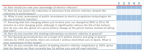 On the other hand, Figure 28 shows the results of the different topics that were less relevant for the customers in the survey. For example, the evaluation of the existing information, in general, on EVs. At present, there are few advertising campaigns that encourage the public to buy EVs or provide information about EVs.