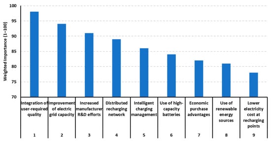 This prioritisation has been found with the average of all ratio weights, showing that the higher the value of an improvement, the greater its influence on customer satisfaction. Thus, more effort should be put into achieving this improvement in order to make the implementation of EVs more successful in the market.