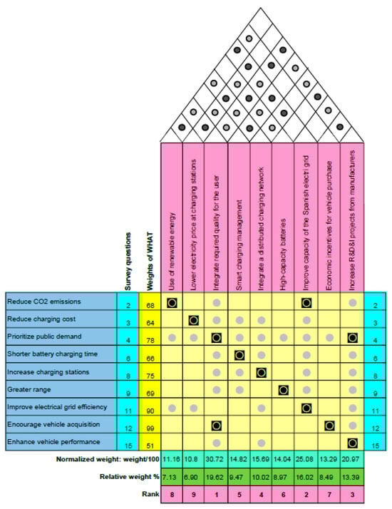 However, with respect to the results obtained in the quality house for the market deployment of the electric vehicle, different conclusions can be drawn for each proposed improvement.