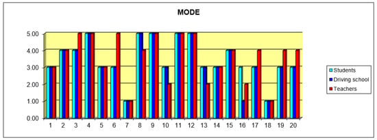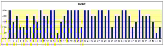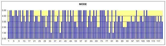 Furthermore, according to Figure 29 and Figure 30, there is a majority of questions whose most frequent mode values are at or above 3. With regard to these results, the same conclusions can be drawn as above.