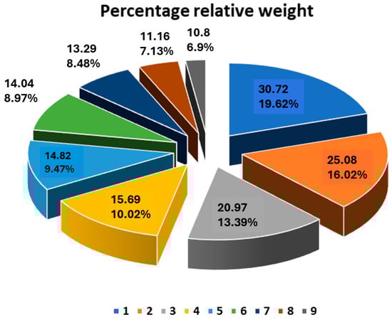 Looking at the results of the relative weights in Figure 30, it can be seen that the highest value is 30.72, corresponding to the improvement in integrating the quality required by the user, which represents a 19.62% weight in all the proposed improvements.