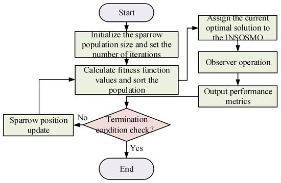 SSA, a robust swarm optimization algorithm, excels in global exploration and local exploitation, with a simple structure. It outperforms particle swarm optimization in optimizing multi-dimensional functions, offering superior stability and convergence accuracy [24]. Considering the numerous parameters of the INSOSMO, the SSA is employed to perform the offline optimization of its critical parameters, thereby ensuring superior observation performance.
