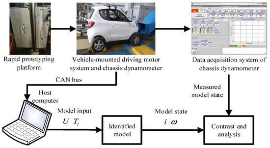In order to more intuitively and effectively reflect the effectiveness of the proposed closed-loop subspace identification algorithm based on auxiliary variable principal component analysis in the parameter identification process of the permanent magnet DC brushless motor model, a chassis dynamometer simulation test of the vehicle-mounted permanent magnet DC brushless motor was conducted. Through independent experimental settings, different driving datasets from those used in the model identification process were collected to ensure independence between the model identification data and the model validation data, thereby more clearly reflecting the actual effectiveness of the proposed identification algorithm.