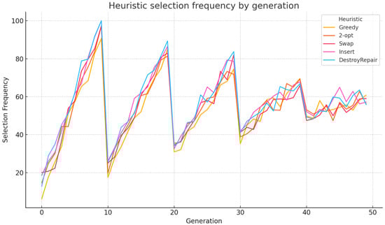 Regarding evolutionary baselines, NSGA-II and NSGA-III remain popular for multi-objective optimization [46]. However, they are static in terms of operator selection and do not integrate reinforcement learning mechanisms. In contrast, QHHF adapts its search heuristics over time using feedback from the problem environment, making it more suitable for dynamic disaster logistics contexts. Future work may explore hybridizing QHHF with NSGA-II operators to benefit from both Pareto sorting and learning-based adaptation.