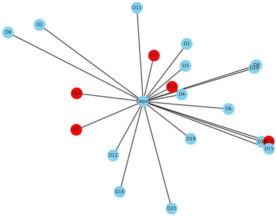 Disaster logistics involves the planning, management, and coordination of resources and services to support affected populations during and after natural or human-made disasters [1,2,3]. Efficient logistical operations are critical for minimizing human suffering, especially in time-sensitive and resource-constrained environments. One of the most challenging aspects of disaster logistics is decision-making under uncertainty, where factors such as road closures, fluctuating demand, and limited accessibility significantly complicate routing and resource allocation [4,5,6].