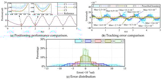 19], a discrete extended state observer (DESO) based on MFA-SMC was introduced, optimizing the tracking accuracy of the system. While the aforementioned control methods exhibit good robustness, they face the issue of unclear transient performance. The prescribed performance control (PPC) method, known for its outstanding ability to quantitatively characterize the performance of control systems, is widely applied [