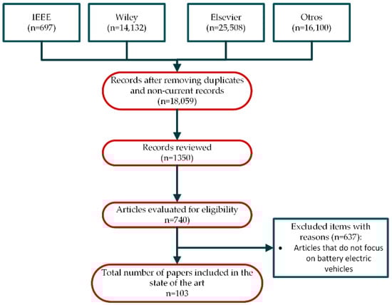 This article presents a review of the state of the art, with the primary purpose of identifying current trends in research and pinpointing areas that require further attention, which is crucial for guiding future research. In addition, a summary of the articles can serve as a quick reference for researchers and practitioners, saving them time when searching for specific information. The search was conducted using the following databases and search engines: IEEExplore, Springer Nature, ScienceDirect, and SciELO. The research methodology followed to obtain the articles for this state-of-the-art review is illustrated in the diagram in Figure 2, which shows how decisions were made to aggregate the articles.