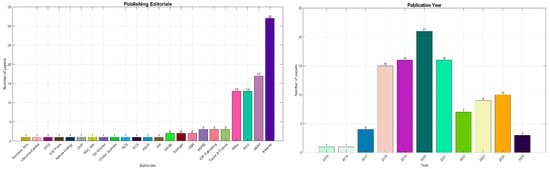 The most recent studies on electric vehicles, published between 2018 and 2025, as shown in Figure 3, have become highly relevant due to technological advances and increased adoption of electric mobility. These studies focus on key aspects such as battery thermal management system optimization and improved autonomy, safety, and sustainability of these vehicles. They also present innovative solutions to address challenges such as resource availability, energy efficiency, and the development of charging infrastructure. During this period, research has played an essential role in transitioning to more sustainable and efficient transportation, reducing carbon emissions, and fulfilling global environmental objectives.