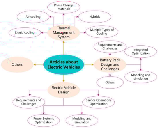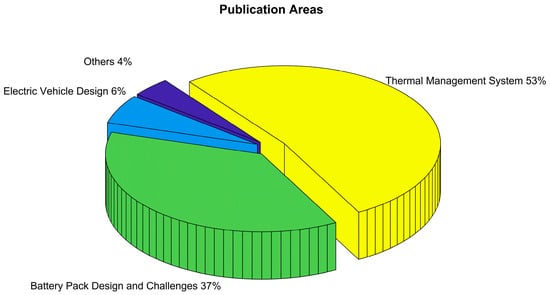 The number of publications analyzed and classified is 99 articles. These articles were classified into four main areas, including electric vehicle design, thermal management system, battery pack design and challenges, and others, as shown in Figure 4.