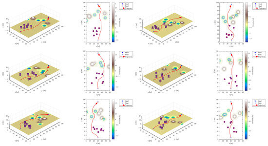 To validate the generalization performance of the model, we conducted tests in a random environment. As shown in Figure 10, the robot’s navigation trajectory in scenarios with random obstacles and terrains is plotted. The experimental results demonstrate that, in the random environment, the robot was able to successfully reach the target and avoid obstacles and rugged terrain.