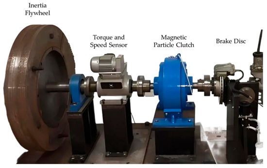 The magnetic powder clutch is the primary actuator of this system and serves two purposes: First, during the driving phase, it transmits the motor’s driving force to the flywheel, causing the flywheel to rotate. Second, during the braking phase, it transmits both the braking force from the brake and the regenerative braking force to the flywheel, decelerating the flywheel. The rotational kinetic energy of the inertial flywheel simulates the translational kinetic energy of a moving vehicle. A speed-torque sensor measures the flywheel’s rotational speed and the applied braking torque.