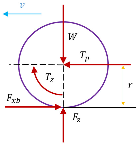 During braking, it is assumed that only two states are considered: pure rolling of the wheel and locked-wheel skidding. When the braking intensity is low, the ground braking force is sufficient to overcome the braking force generated by the brake, allowing the wheel to roll. In this case, the following holds: