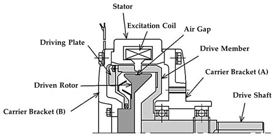 - Xu, S.; Wang, C.; Dai, J. Design and Analysis of a Vehicle Magnetic Particle Clutch with Permanent Magnets. Int. J. Appl. Electromagn. Mech. 2017, 54, 177–186. [Google Scholar] [CrossRef]