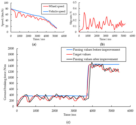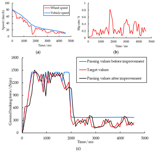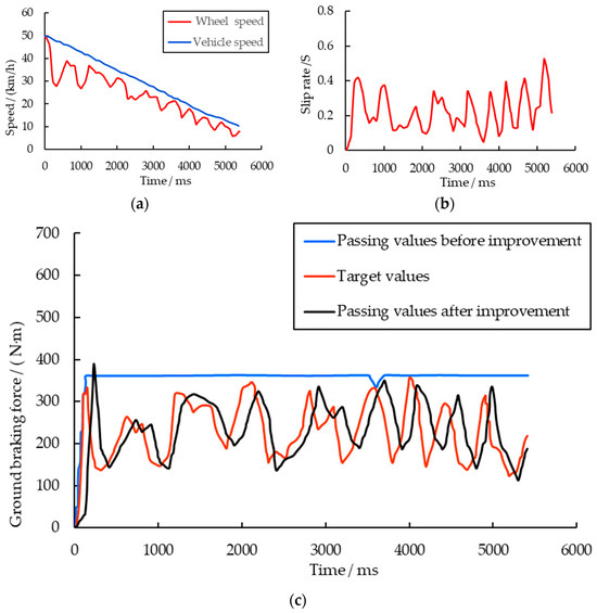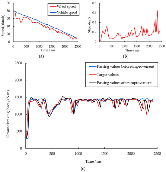 During the vehicle braking process, the extent of wheel sliding is typically described using the slip ratio , which is defined by Equation (7).