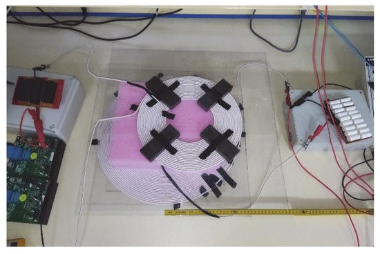 Among the various topologies employed in wireless magnetic resonance charging systems, the series–series (SS) configuration is one of the most commonly used: unlike other topologies such as series–parallel (SP) or parallel–parallel (PP), SS compensation allows for power stability even if the alignment or the distance between coils varies, and the current in the primary coil also remains stable, which simplifies the regulation.