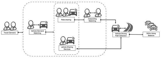 In addition, SAVs can play a pivotal role in addressing the “first-mile” and “last-mile” connectivity challenges within urban transport systems. They are particularly effective in areas underserved by conventional public transit, where they may operate as flexible substitutes for fixed-route services. The key advantages of SAVs in this context include door-to-door service, customizable vehicle types, and intelligent fleet scheduling, all of which contribute to greater spatial coverage and service precision. However, several challenges remain. These include uncertainty in waiting times, inconsistent vehicle conditions, and inadequate responses to emergency situations. Such limitations are largely influenced by platform governance mechanisms and the prevailing norms of public user behavior [15] (Figure 2).