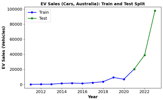 The data supporting the findings of this study are publicly available from the International Energy Agency (IEA). The dataset can be accessed at: https://www.iea.org/energy-system/transport/electric-vehicles (accessed on 23 March 2025).