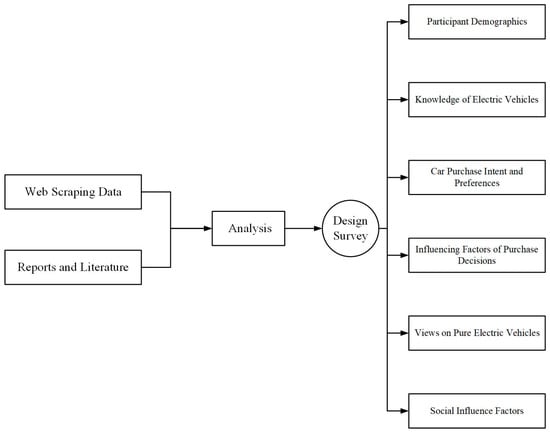 Furthermore, this article combines the questionnaire designed in the literature [23,24,25,26] and the actual situation in the city of Urumqi to ensure that it can be a comprehensive assessment of the consumer’s willingness to buy the design logic is shown in Figure 2.