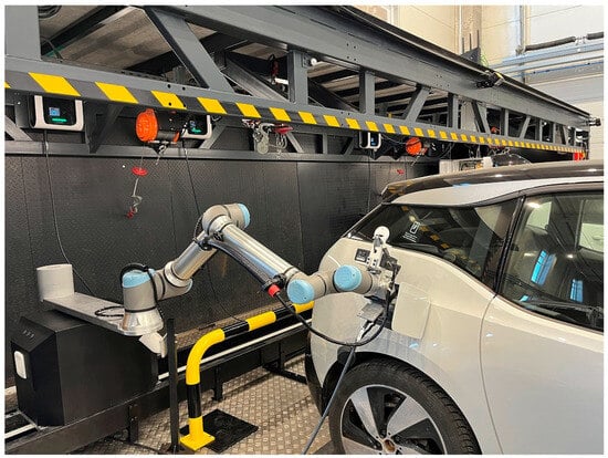 - Walzel, B.; Sturm, C.; Fabian, J.; Hirz, M. Automated robot-based charging system for electric vehicles. In 16. Internationales Stuttgarter Symposium; Springer: Stuttgart, Germany, 2016. [Google Scholar]