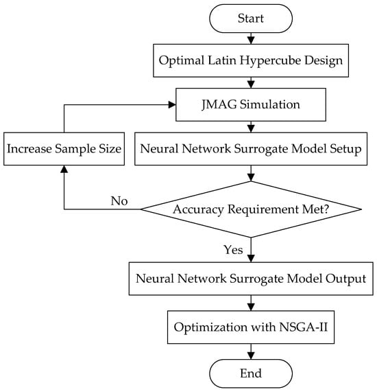 29] is employed to optimize the surrogate model. Compared to simplified analytical methods, finite element optimization can more accurately simulate the complex magnetic field distribution inside the generator, thereby improving optimization accuracy. Compared to direct iterative optimization using transient finite element models, surrogate models significantly reduce the optimization time while maintaining accuracy.