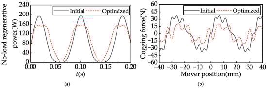 Figure 8 compares the initial and optimized designs in terms of no-load regenerative power and cogging force.