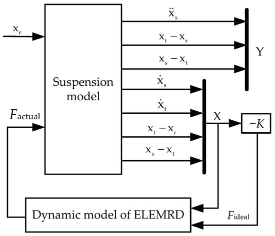 (3) A semi-active suspension model incorporating the ELEMRD was developed and controlled using both LQR and PID control strategies. Compared to the passive suspension, both the LQR and PID controllers improve performance. The PID controller reduces sprung mass acceleration by 29.9% and suspension working space by 2.8%, but increases dynamic tire load by 41.0%, negatively impacting handling. LQR reduces acceleration by 14.2% and suspension working space by 7.5%, while increasing tire load by only 11.2%, achieving a better balance. Under Class C road conditions at 20 m/s, the PID controller achieves a peak regenerative power of 633.2 W and an RMS value of 80.2 W, significantly higher than LQR’s peak of 404.2 W and RMS of 49.8 W. However, this increase in regenerative power with PID control comes at the cost of degraded high-frequency tire–road contact performance, indicating a trade-off between energy regeneration and vehicle handling stability. Overall, the LQR controller provides a better balance between regenerative efficiency and ride comfort and stability.