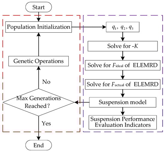 (1) Objective Function: Enhancing energy recovery efficiency is a key goal in designing energy-regenerative suspension systems. The regenerative power output of the linear generator directly indicates the suspension system’s energy recovery capability. Therefore, maximizing the root mean square (RMS) of the no-load regenerative power is selected as one of the optimization objectives. The cogging force of the linear generator varies periodically with the relative position between the mover and stator, representing an uncontrollable force. At times, the mover must overcome this force to operate properly, leading to unnecessary energy losses. If the cogging force is too large or fluctuates sharply, the suspension may fail to respond sensitively to small vibrations. Optimizing the cogging force helps reduce additional energy consumption, enhance power generation efficiency, and ensure better controllability of the suspension’s dynamic response. Therefore, minimizing the peak cogging force is chosen as another optimization objective.