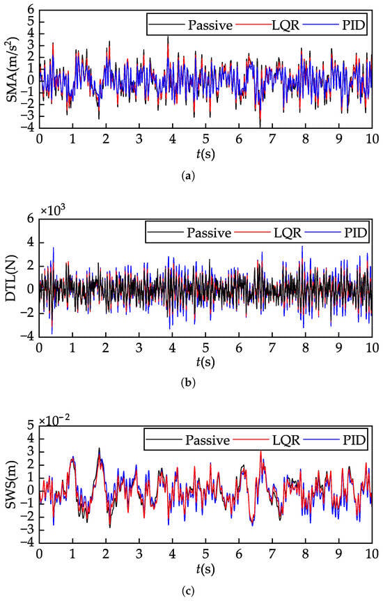24]. The study found that incorporating the TLPMSM slightly increased the amplitudes of both the sprung and unsprung masses but did not change the overall motion trend. This suggests that integrating energy regeneration devices into semi-active magnetorheological suspension systems is feasible. Zhang et al. developed an electromechanically coupled dynamic model of an energy-regenerative semi-active magnetorheological suspension system and conducted a time-domain analysis [