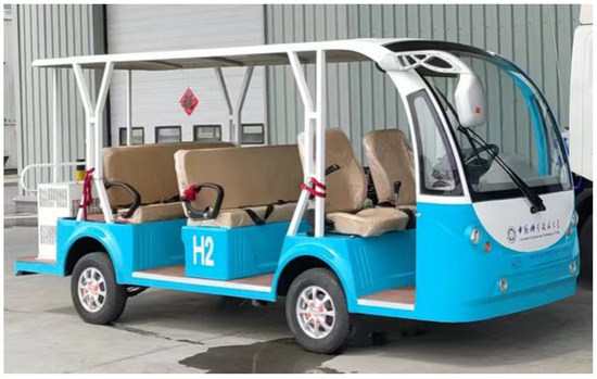 In this study, the fuel cell data as well as the battery data in the FCHEV used were provided by the manufacturer. The entire FCHEV powertrain mainly consists of the fuel cell and its auxiliary system, the lithium-ion battery pack, the DC/DC converter, and the electric motor, and the FCHEV is shown in Figure 1. The following mainly introduces the component models related to energy management in the vehicle.