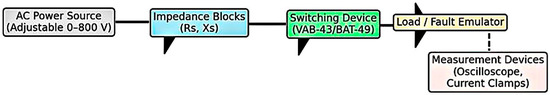 The results also confirmed the applicability of the developed setpoint setting algorithm based on the circuit design model. Calculation of short-circuit currents using simplified formulas that take into account the active and reactive resistances of all elements (transformers, feeders, contact network, and arc) showed a discrepancy with experimental data of no more than 15–20%. Such a level of accuracy is recognized as permissible for engineering calculations, which substantiates the possibility of practical use of the proposed formulas for the preliminary selection of setpoints. The proposed algorithm combines numerical modeling and obtained experimental dependencies, providing a comprehensive approach to solving the problem of increasing safety and reliability. Based on it, it is possible to determine the current and pulse settings for each section of the contact network, taking into account the parameters of the power supply network, the characteristics of the switching equipment (switches, relays) and the load. Such an integrated approach made it possible to achieve a significant increase in the effectiveness of protection in conditions of limited current reserves, unstable state of the contact network (temporary supports, lack of grounding) and increased risk of arc faults.