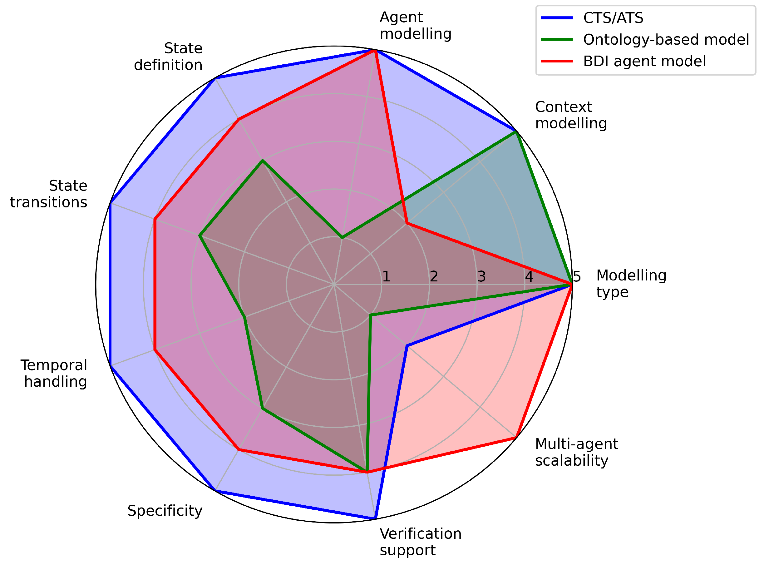 Table 6. Numerical evaluation (1–5) of CTS/ATS, ontology-based models, and BDI agent models across the metrics defined in Table 5. Ratings are derived from the qualitative assessment and indicate the degree to which each method satisfies the corresponding criterion.