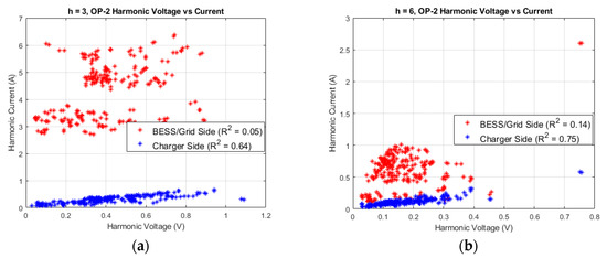 Section 5 presents a comparative analysis between two configurations: (a) a combined BESS/fast charger module, and (b) a fast charger supplied directly from the grid. To ensure consistency, only results from the grid-supplied charger operating at active power levels below 75 kW are compared with those from the BESS-assisted system, which limits the grid power drawn to 75 kW. In Section 6, the harmonic hosting capacity of the network is assessed using the measured emissions under two conditions, without EV charging and during EV-charging events.