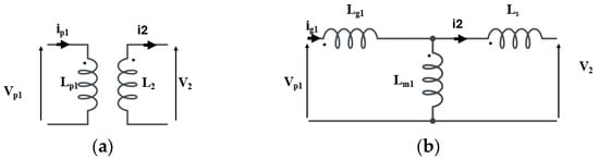 Figure 7 shows a T-equivalent model with leakage and magnetizing inductances of two magnetically coupled inductors.