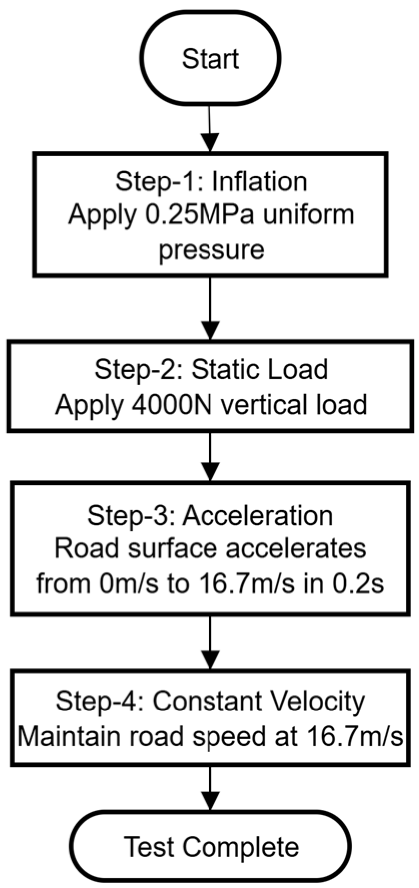 - Zhou, S.; Chen, L.; Li, Y.; Sun, P.; Su, G.; Meng, J. Study on the influence of different tire cord structures on tire grounding characteristics. J. Eng. Fibers Fabr. 2022, 17. [Google Scholar] [CrossRef]