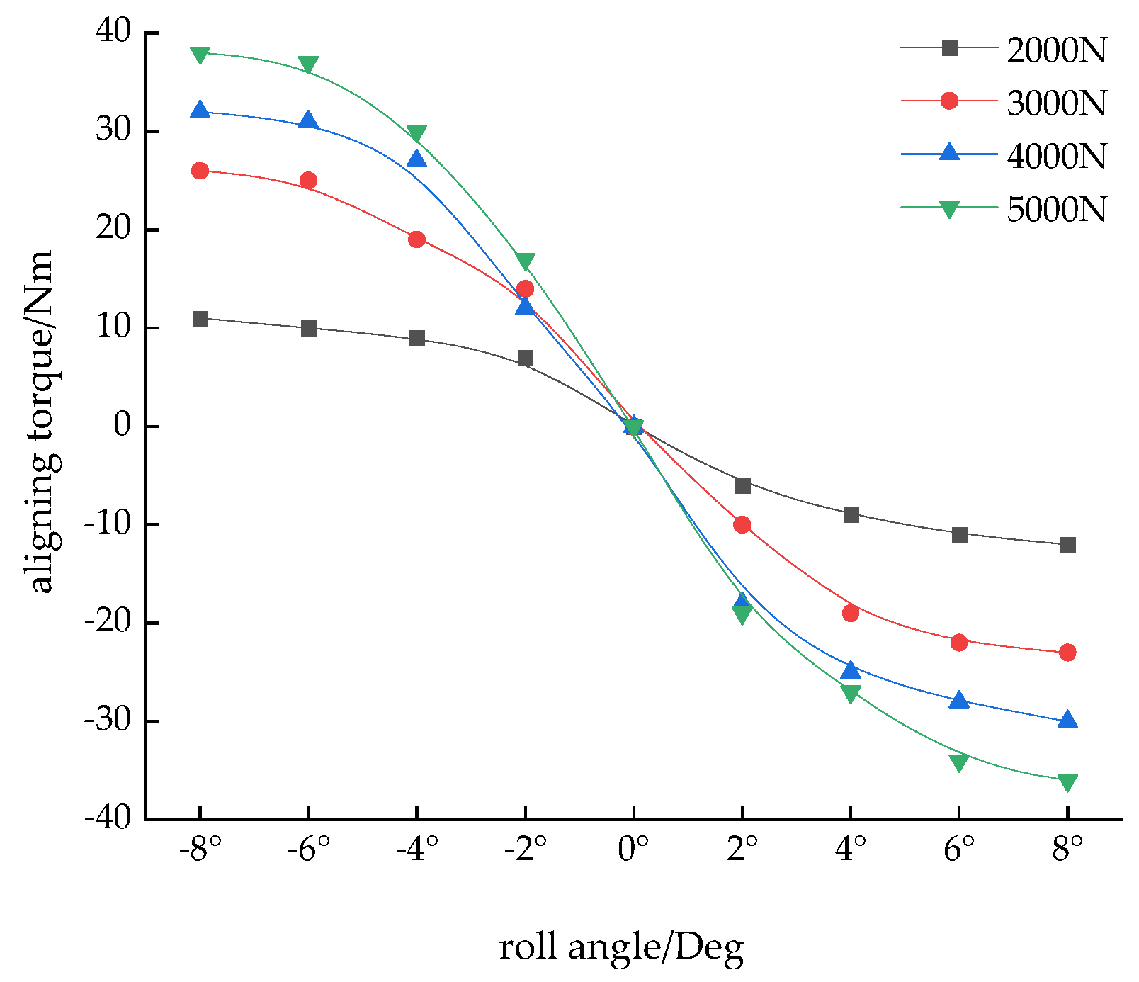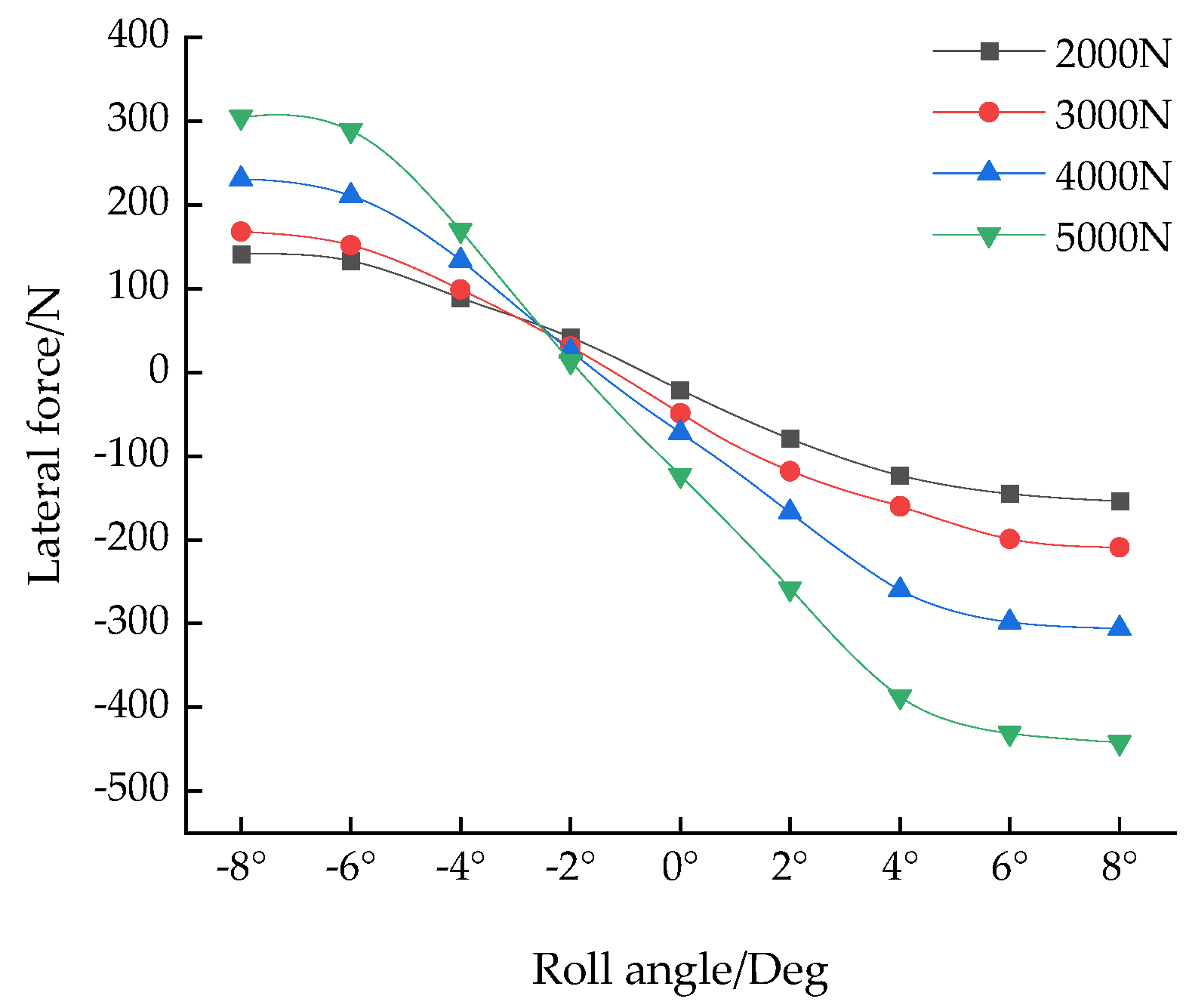 - Yin, H.F.; Lu, D.; Min, H.T.; Wu, H.D.; Zhang, Y.D. Study on the effect of lateral inclination angle on the mechanical characteristics of tire deflection. Automot. Eng. 2025, 47, 342–355. [Google Scholar]