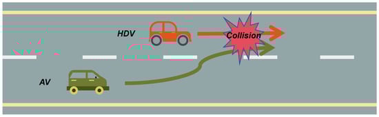 In recent years, autonomous driving has advanced rapidly, with many research concentrating on self-driving technology. The field of autonomous driving typically includes perception [1,2,3,4,5,6], planning [7,8,9,10,11,12], and control [13,14]. Besides, some works rely on the blockchain-based technology to enhance the autonomous driving [15,16]. However, interactive driving scenarios still pose significant challenges for motion planning. Among these, ensuring safety is the top priority. In Figure 1, an autonomous vehicle (AV) coexists on the road with multiple human-driven vehicle (HDV), creating an environment where insufficient caution could lead to collisions. The AV must continually evaluate potential hazards and generate safe trajectories during the interactions.