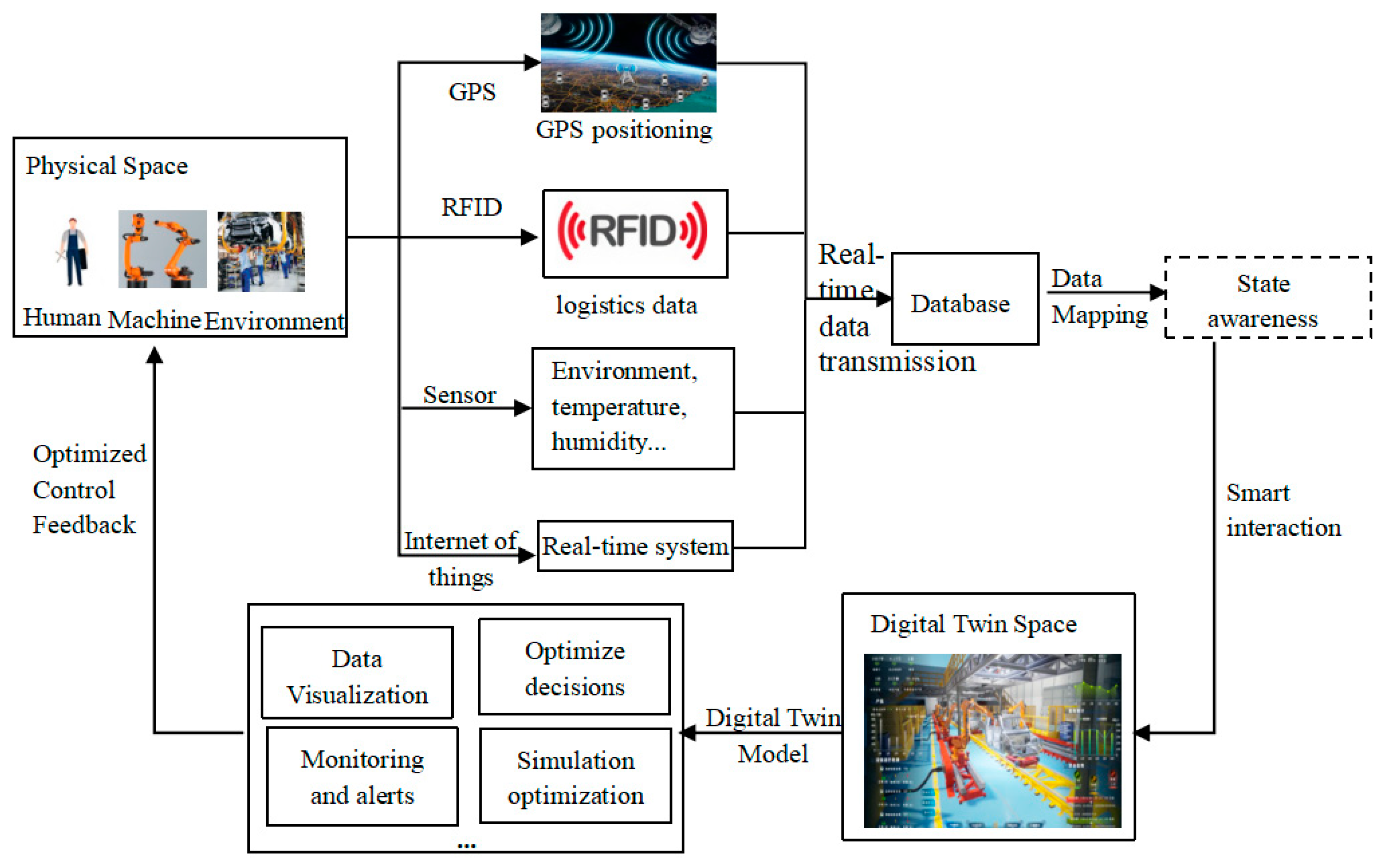 - Li, H.; Wang, H.; Li, L.; Zhang, Y.; Yang, W.; Wen, X.; Zhang, X.; Liu, G.; Zhang, X.; Liu, J.; et al. Intelligent optimization method of ‘human machine-environment’ integrated industrial digital twin system. Comput. Integr. Manuf. Syst. 2024, 30, 1551–1570. [Google Scholar] [CrossRef]