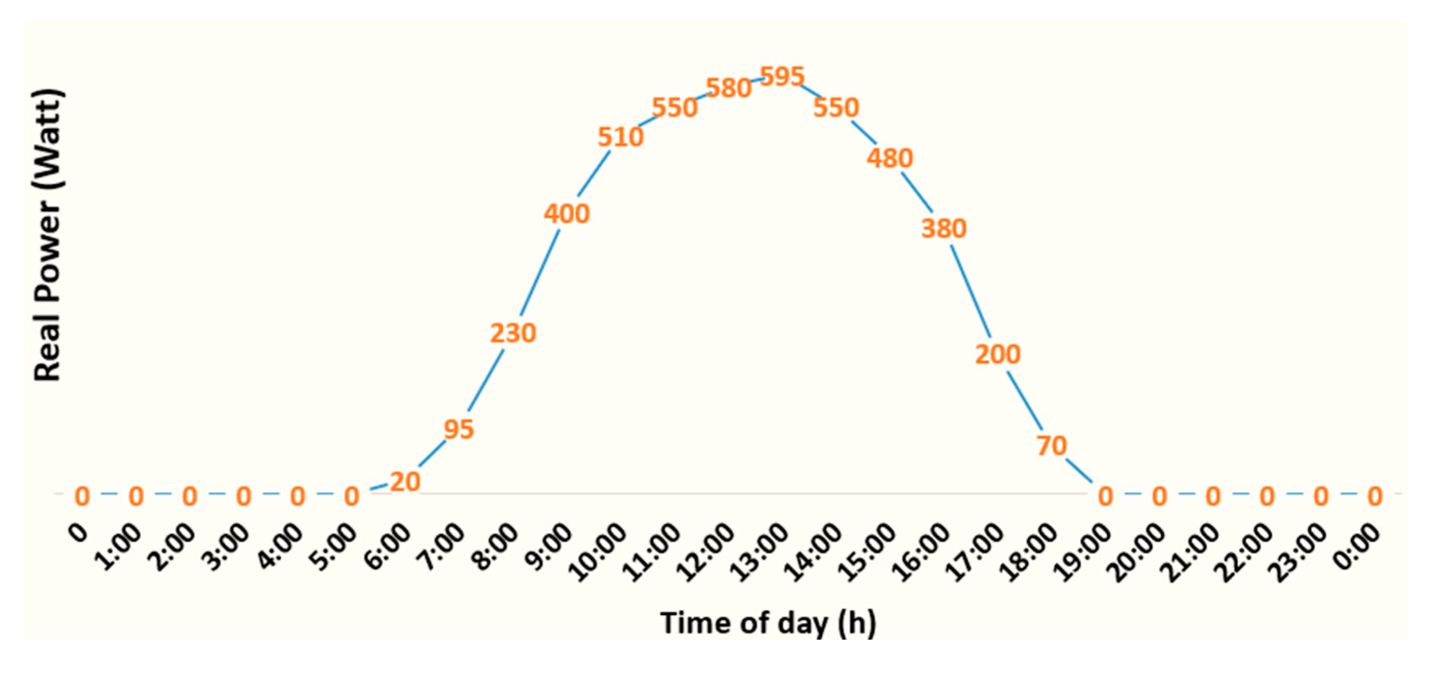 Figure 10 presents the diurnal PV output profile of a 5 kW residential solar system, derived from a typical summer generation pattern in Brisbane, as previously shown in