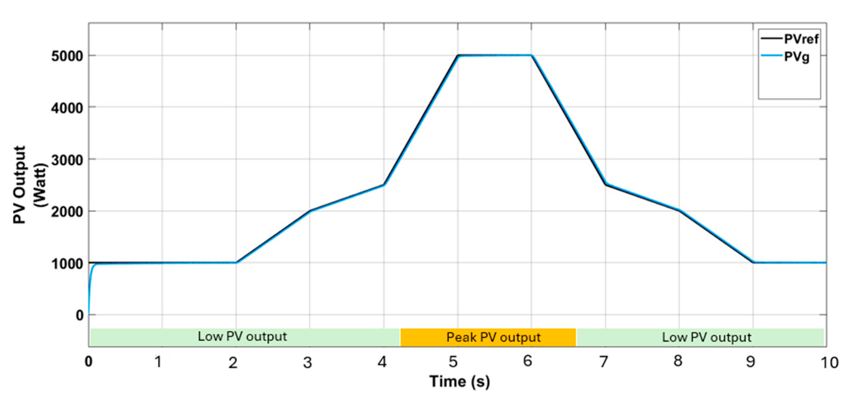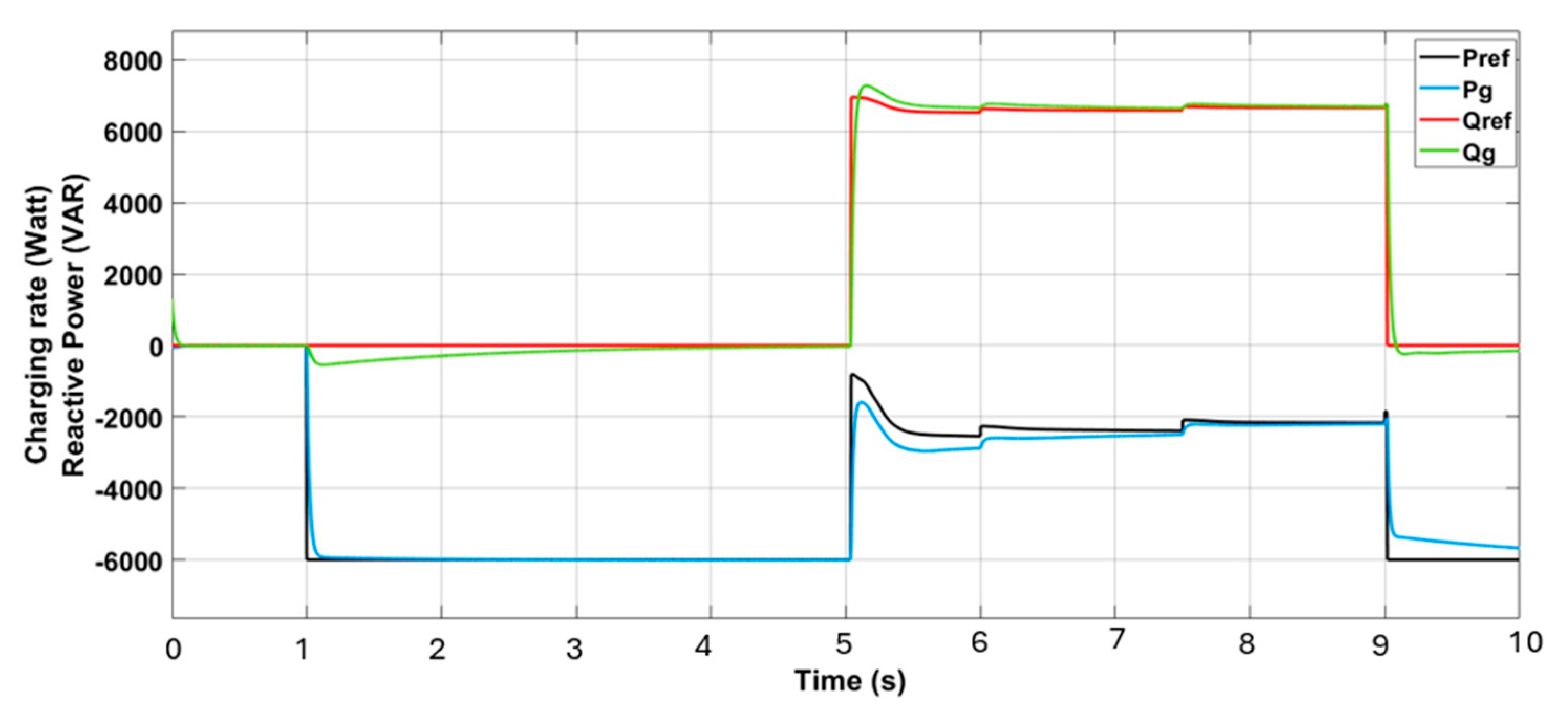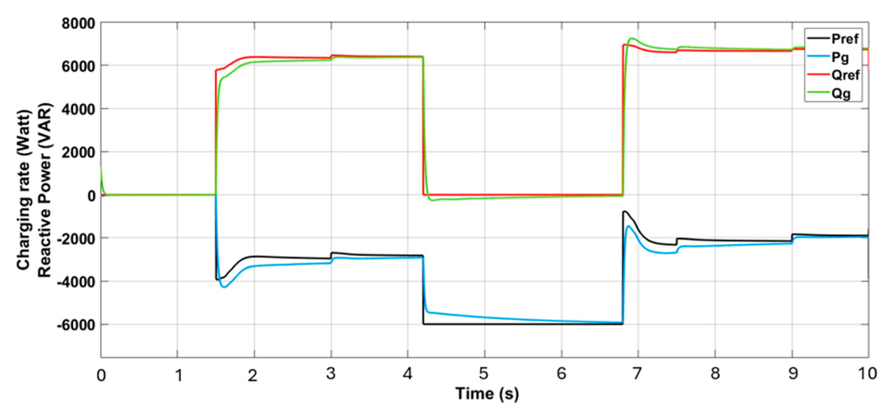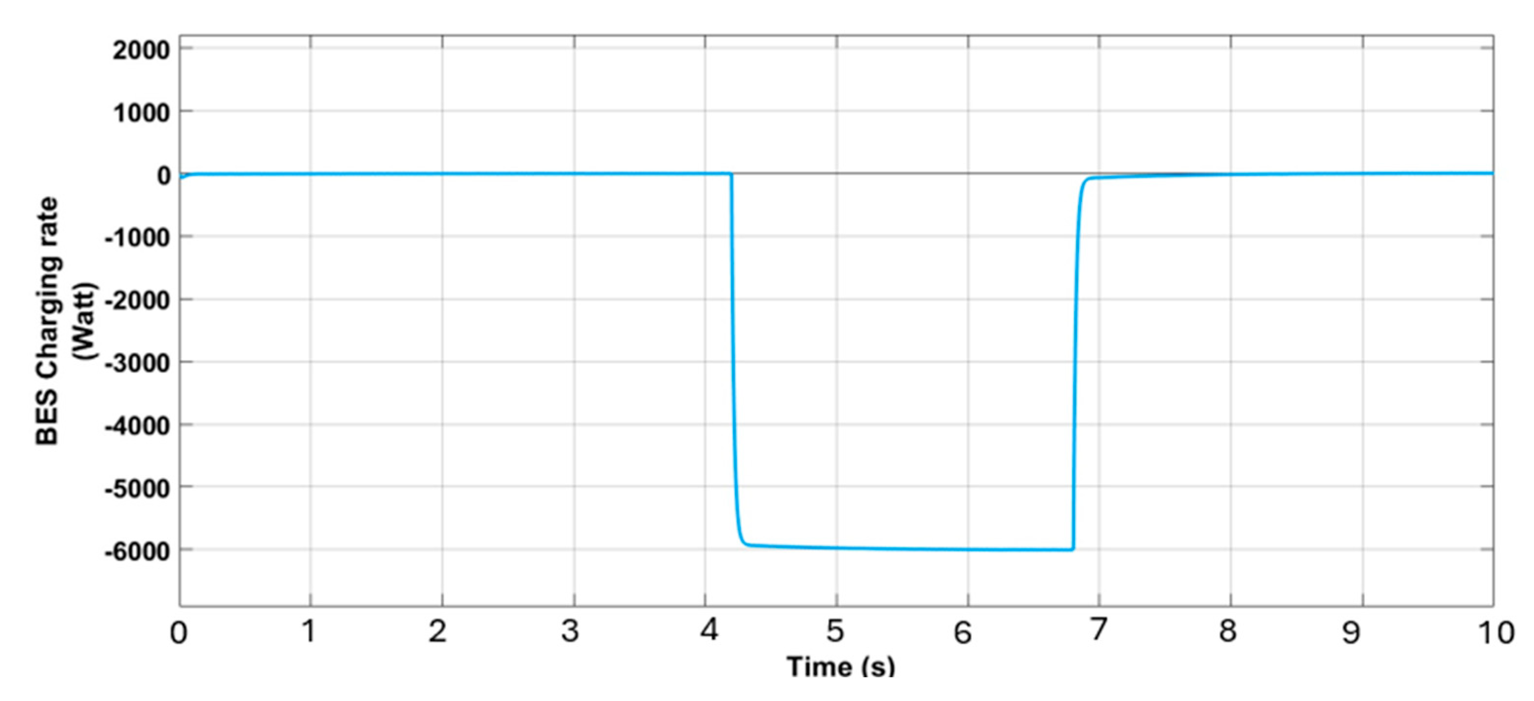 Figure 10. During the peak solar generation interval (4.2 s to 6.8 s), the VPP authorizes BES charging, while it restricts charging during periods of low PV output (from 0 s to 4.2 s and from 6.8 s to 10 s), as illustrated in
