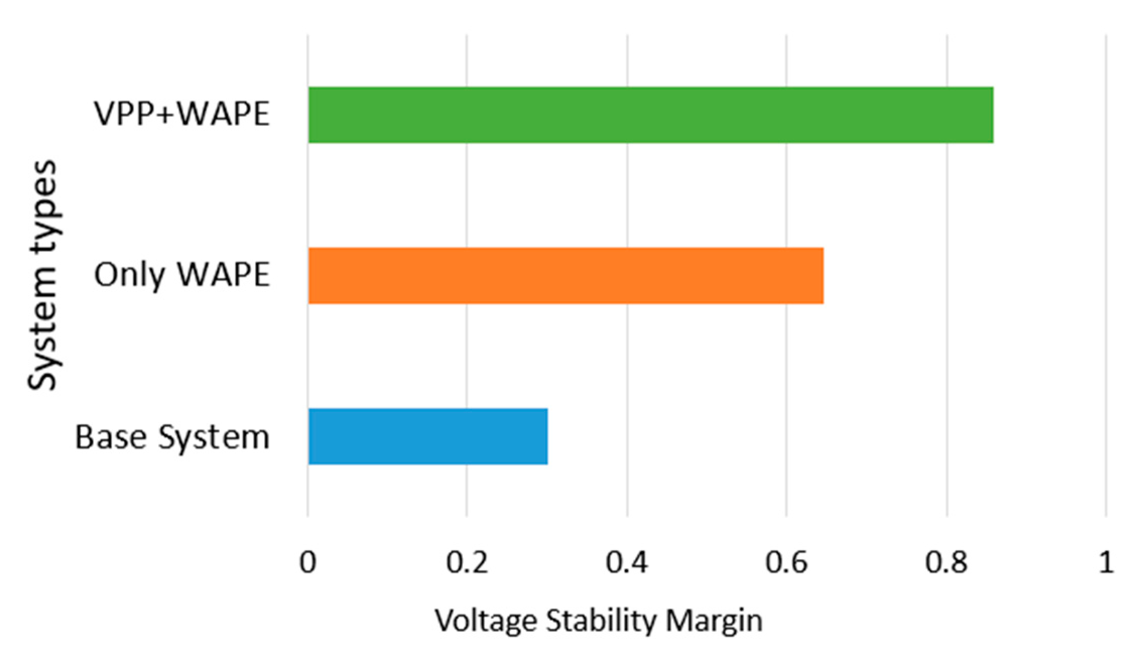 The third configuration combines both WAPE and VPP functionality. The integrated framework achieves a VSM of 0.84, indicating a substantially improved voltage stability and a more robust power system infrastructure, representing a 147% enhancement compared to the base system’s VSM of 0.34. The observed increase in VSM indicates that the coordinated control between the VPP and WAPE mechanisms not only mitigates voltage deviations but also optimizes active and reactive power flow within the network.
