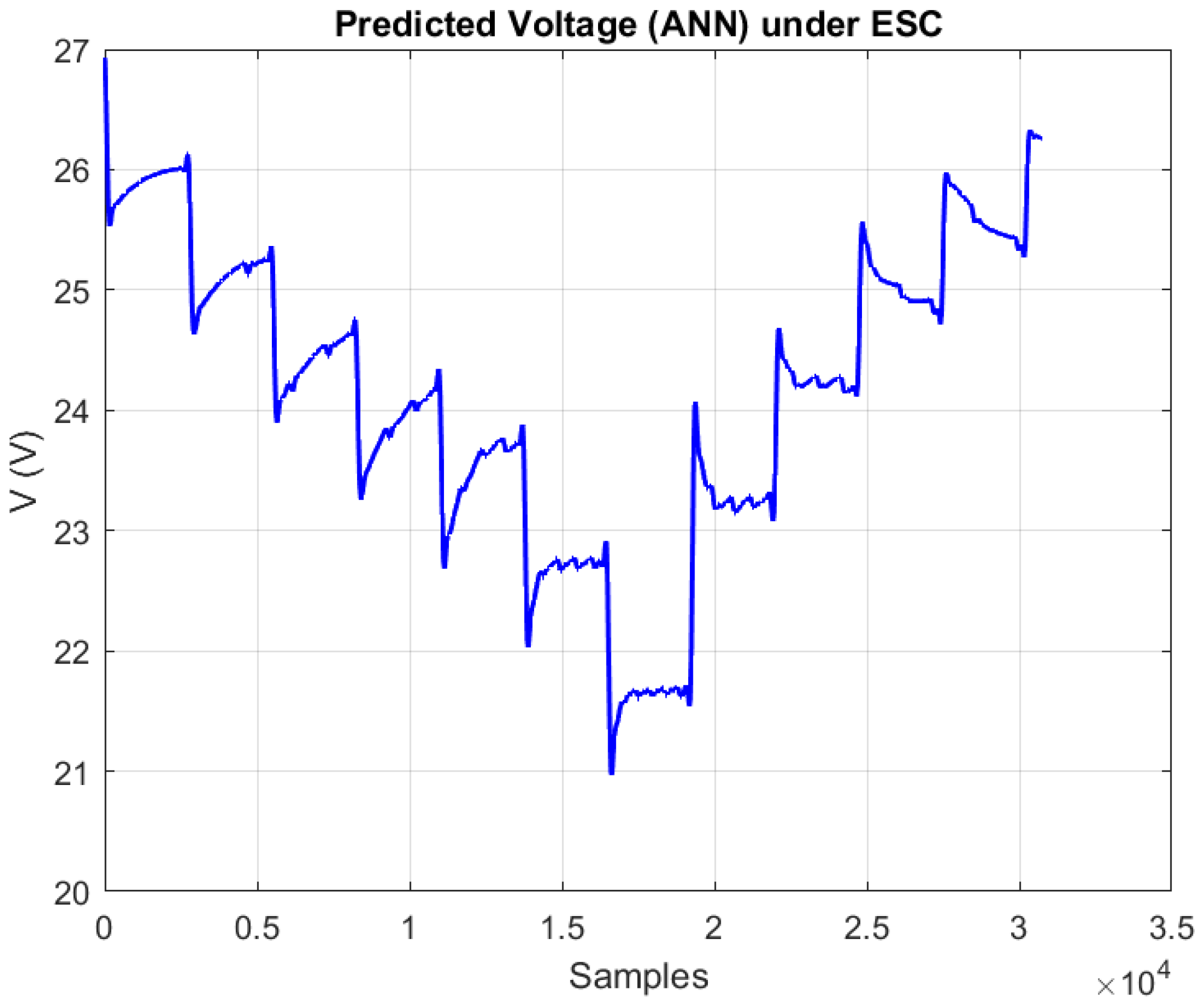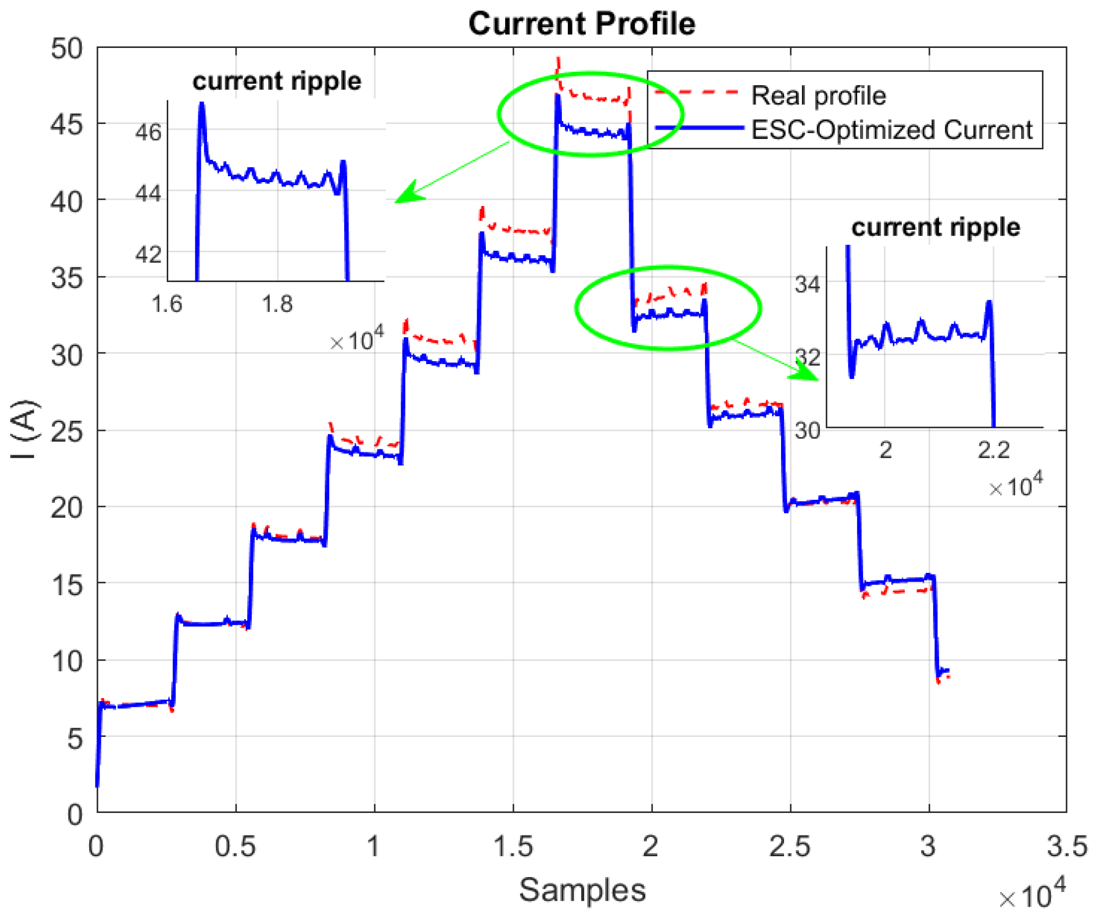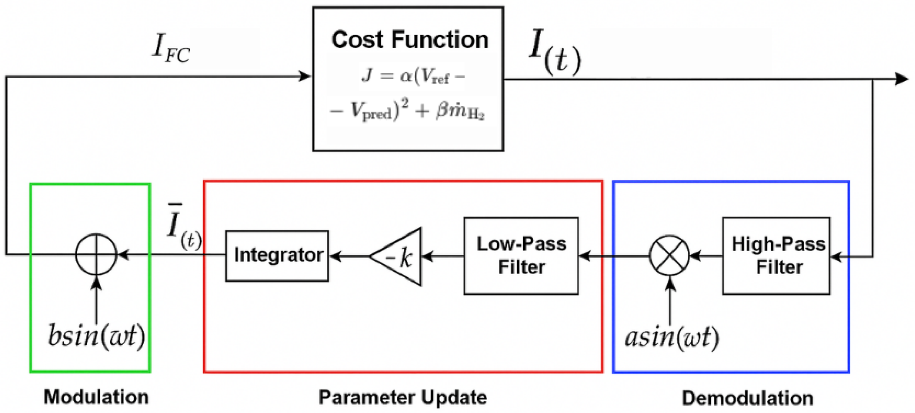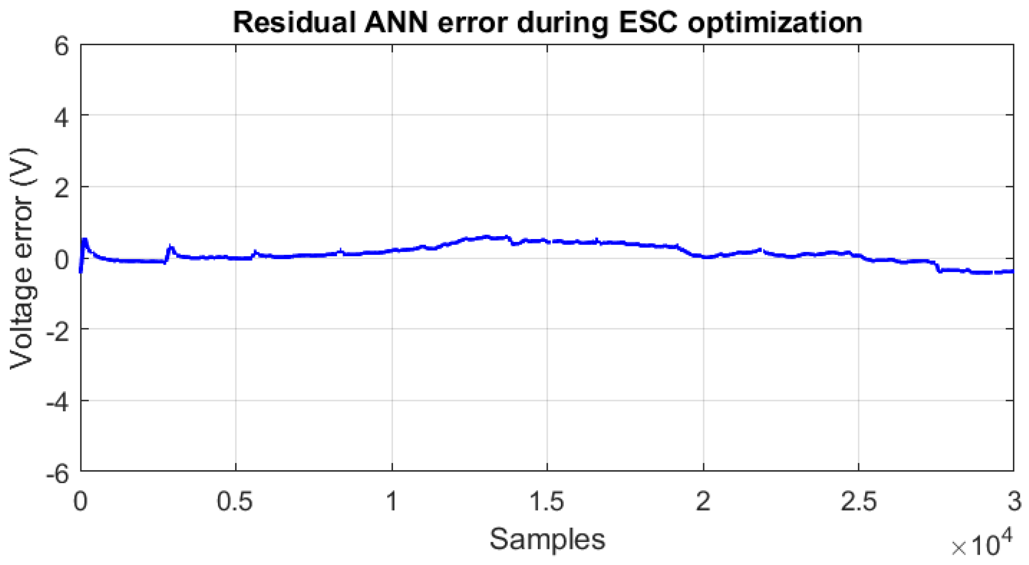 - Gradient estimation: To estimate the derivative of the cost with respect to the current command I, ESC evaluates the cost function at and . These evaluations are performed via the ANN, which predicts the corresponding voltages and .