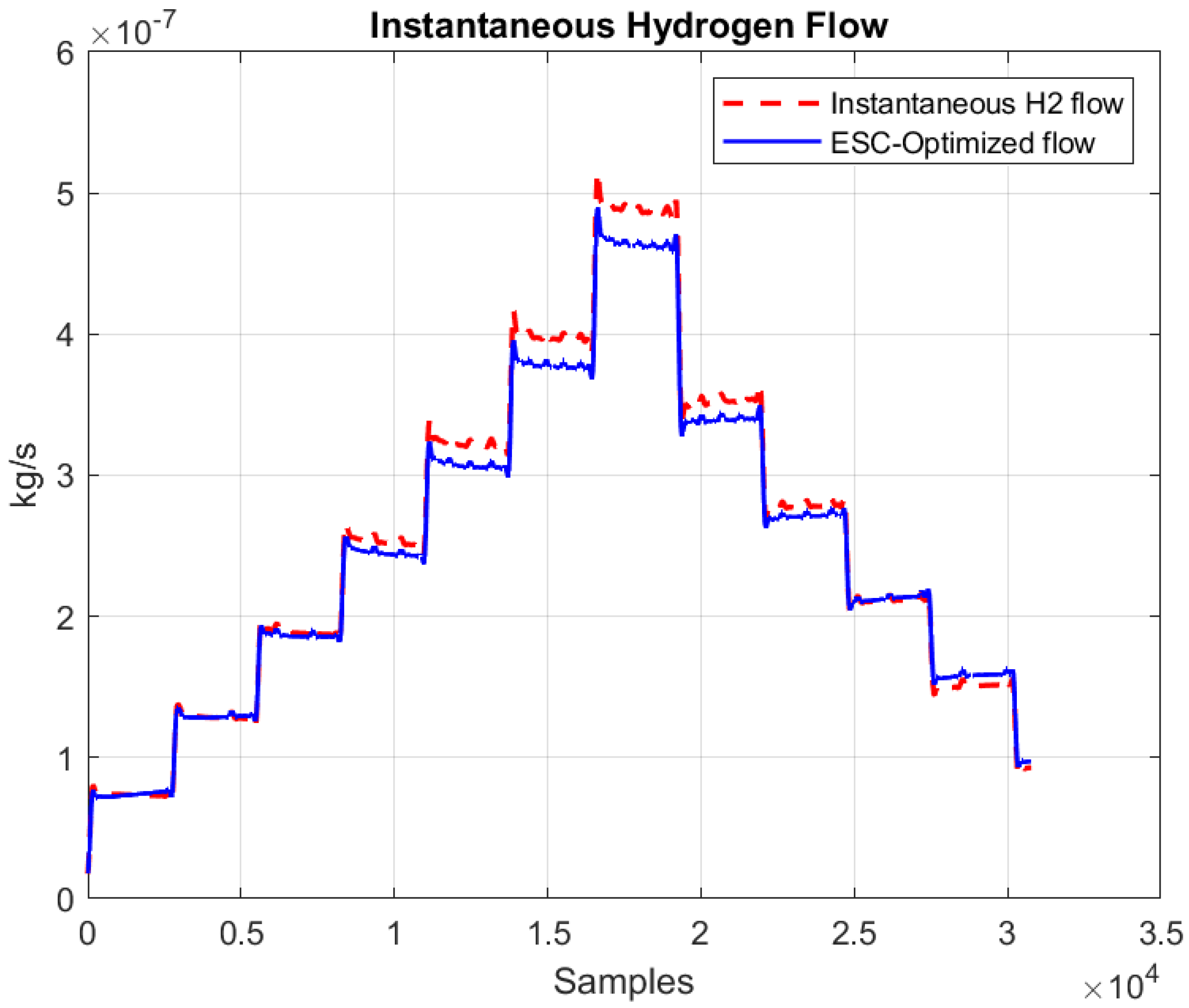 - Kunusch, C.; Castanos, F. Extremum seeking algorithms for minimal hydrogen consumption in PEM fuel cells. In Proceedings of the American Control Conference, Washington, DC, USA, 17–19 June 2013; pp. 1144–1149. [Google Scholar]