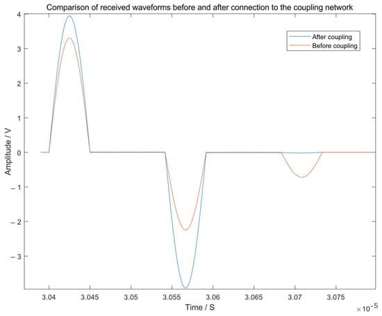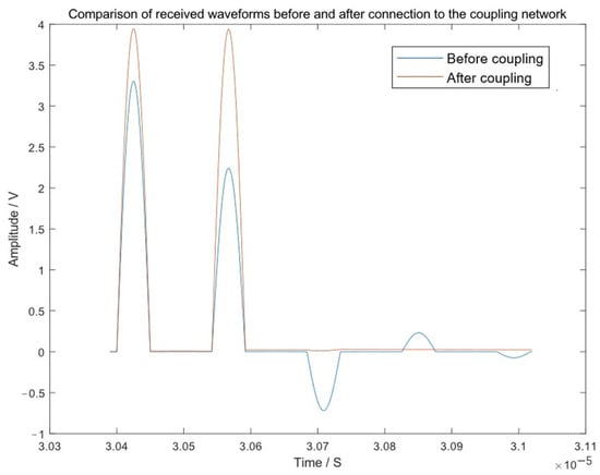 To validate the theoretical analysis of the secondary reflection caused by incident-end impedance mismatch and the effectiveness of the proposed coupling network, comparative simulations were conducted with and without the coupling module.
