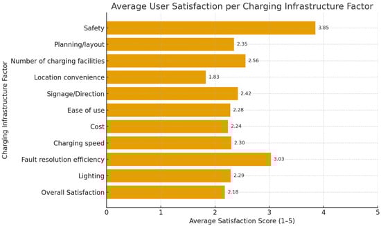 In Figure 3, average user satisfaction for different charging infrastructure factors are shown. The following are the key observations from Figure 3: