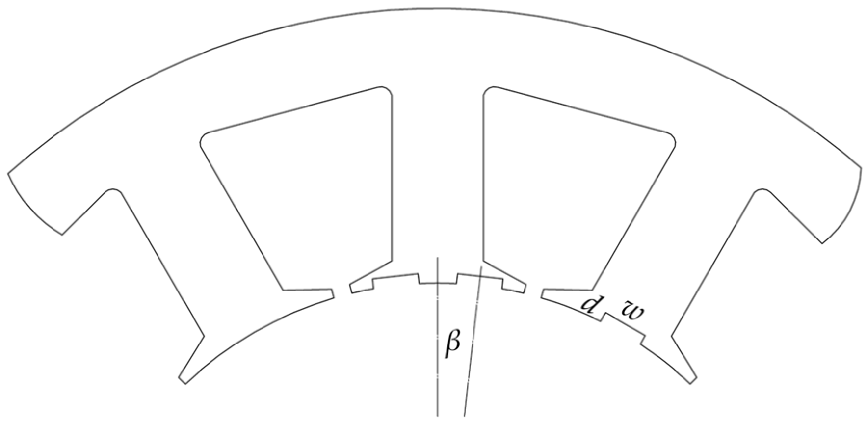 These three geometric parameters are the most fundamental elements defining the shape and position of the auxiliary slots, together constituting its complete geometric definition, each being indispensable. They directly affect the distribution path of magnetic flux lines in the teeth and the local magnetic reluctance: the β determines the relative phase between the slot and the main magnetic field, influencing the cancellation effect of torque harmonics; The w and d collectively determine the cross-sectional area of the slot, controlling the intensity of magnetic flux diversion and magnetic field modulation.