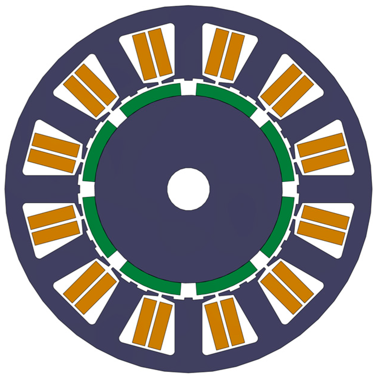 Considering the spatial constraints on the motor stator teeth, cutting auxiliary slots would compromise their mechanical strength. Therefore, the position angle
