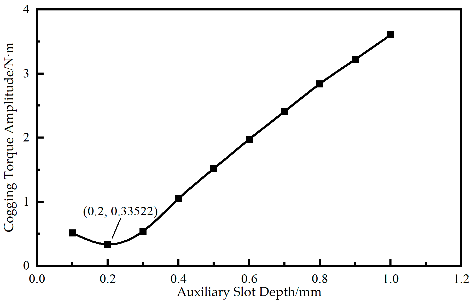 d gradually increases from 0.1 mm, the cogging torque amplitude correspondingly decreases, reaching a minimum value of 0.34 N·m at