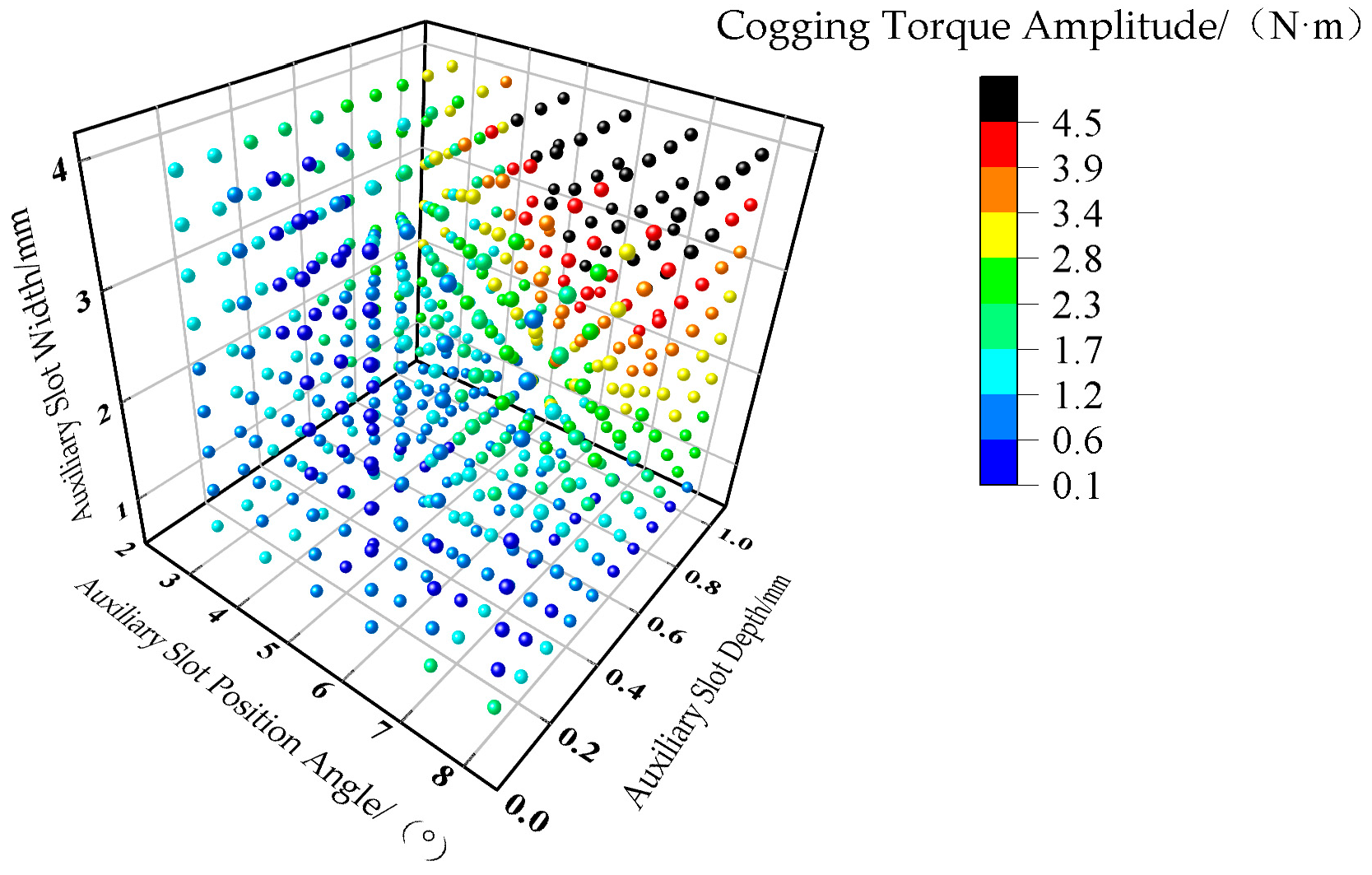 Section 4.2, the results of the global parameter scan show that parameter combinations with cogging torque amplitudes below 0.8 N·m are primarily concentrated in the following region: